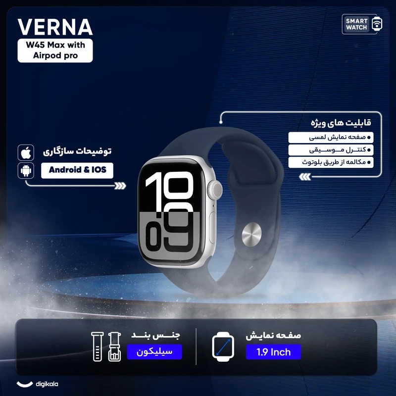 ساعت هوشمند ورنا مدل W45 Max with Airpod pro به همراه هدفون بلوتوثی