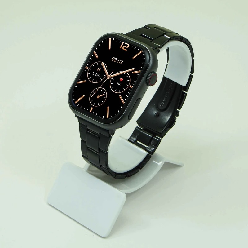 در مورد ساعت، فریم اصلی فلزی بسیار با کیفیت که کاملا حس مدل اصلی را القا میکند. (عکس اول عکس طراحی شده است اما بیشتر عکسهای آلبوم واقعیست) ضمنا هرچند این مدل کپی مدل ۴۶ میلیمتر اپل ساخته شده است، اما سایز بدنه (طول بیرونی فریم) دقیقا ۴۶ میلیمتر نیست و ممکن است کمی کمتر یا بیشتر باشد.