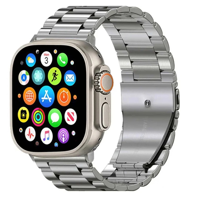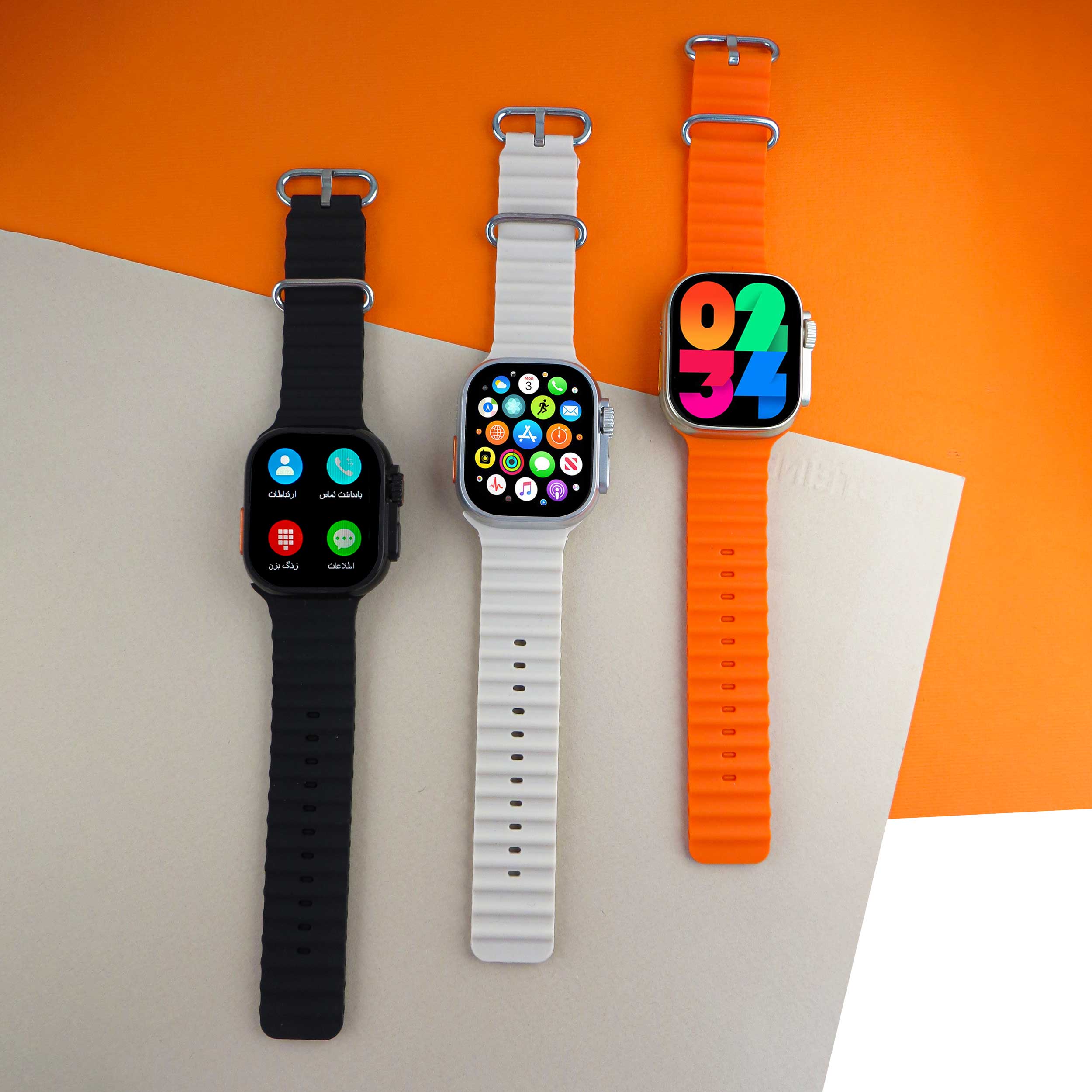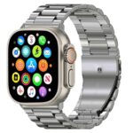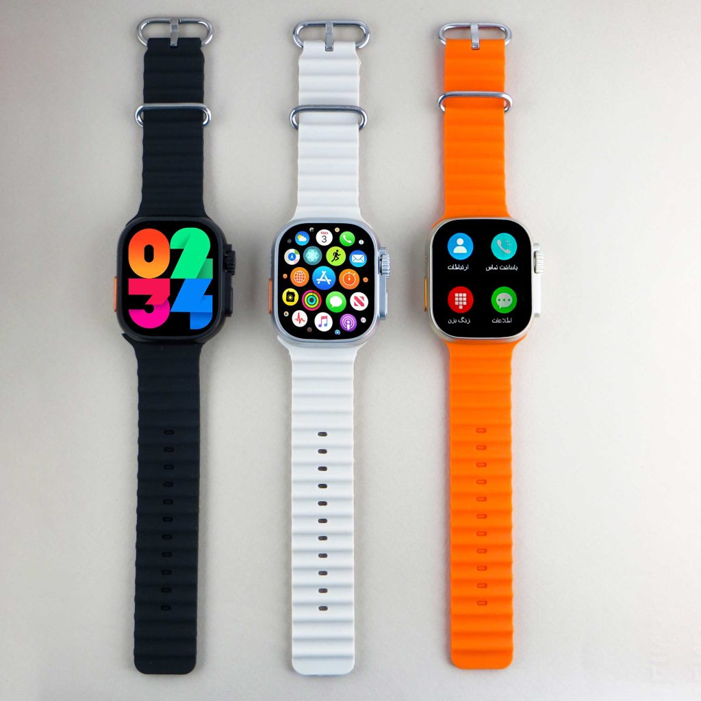 این مدل از لحاظ ظاهری با مدل اولترا مو نمیزنه و بر خلاف خیلی از مدلهای کپی که سایزشون با مدل اولترا اپل فرق میکنه، این مدل دقیقا هم سایز اپل و 49 میلیمتره. این ساعت مجهز به اسپیکر و میکروفون داخلیه و با اتصال اون به موبایل، علاوه بر مکالمه میتونید به موسیقی مورد علاقهتون گوش کنید. هر سه دکمه این مدل یعنی هم دکمه اصلی، هم دکمه اسپورت و هم مجیک باتن (دکمه چرخشی) برای تغییر صفحات و بزرگنمایی و کوچکنمایی فعاله. روشن شدن صفحه با حرکت دست به سمت بالا، فرمان صوتی، پشتیبانی از زبان فارسی در منو و پیامها و… از قابلیت های دیگه این مدله. نحوه اتصال به گوشی هم بسیار راحته (کارت راهنما داخل پک قرار داره). به طور خلاصه اگه بین این همه مدل ساعت طرح اپل، دنبال یه ساعت با قیمت کم ولی کیفیت مناسب و طراحی دقیقا مشابه اپل سری اولترا، میگردید حتما به این مدل فکر کنید.