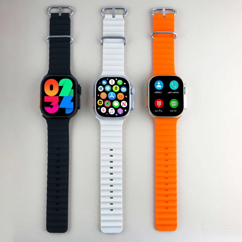 ساعت هوشمند ورنا مدل W49 Ultra، مناسب برای ورزش، روزمره، رسمی، دارای قابلیت‌های صفحه نمایش رنگی و لمسی، کنترل موسیقی، قابلیت مکالمه از طریق بلوتوث، پشتیبانی از زبان فارسی در منو و سیستم‌عامل، بند سیلیکون، فرم صفحه مستطیل