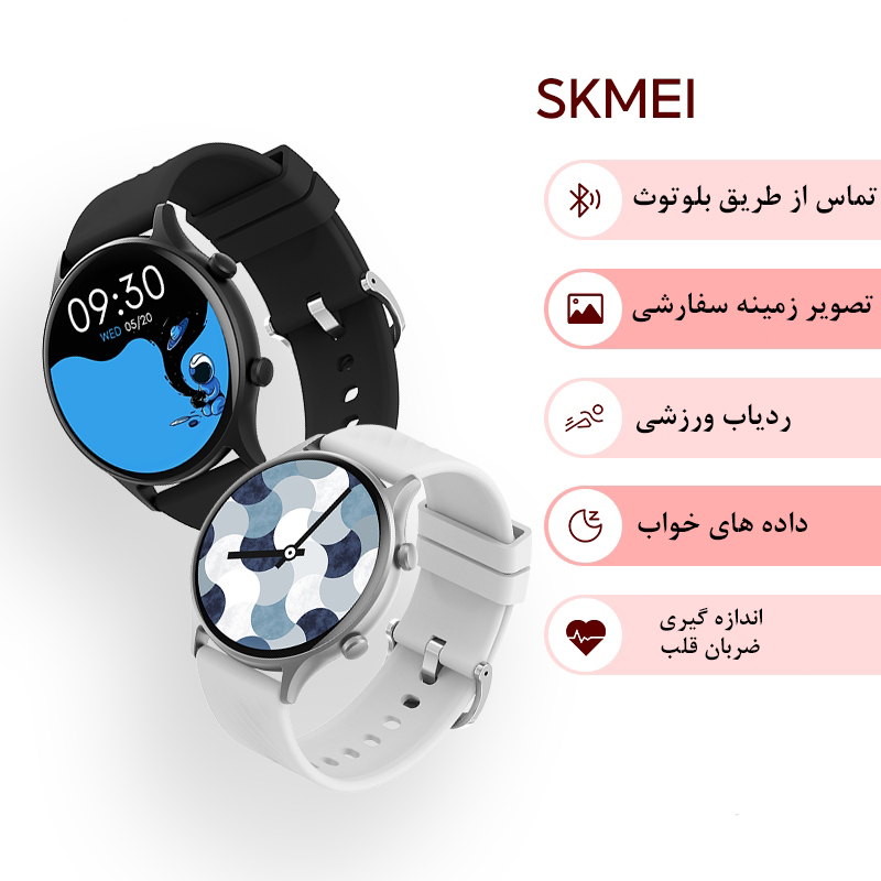 ساعت هوشمند اسکمی با طراحی مدرن، ابعاد استاندارد 1.40 اینچ و وزن تنها ۳۹ گرم، انتخابی هوشمند برای کاربران روزمره محسوب می‌شود. بدنه این ساعت از ترکیب آلیاژ آلومینیوم و استیل ساخته شده که علاوه بر دوام بالا، ظاهری حرفه‌ای و جذاب به آن می‌بخشد. بند سیلیکونی نرم و ضد حساسیت نیز تجربه‌ای راحت را در استفاده‌های طولانی‌مدت فراهم می‌سازد.ساعت هوشمند اسکمی با پشتیبانی از 123 حالت ورزشی متنوع شامل شنا، قواصی، تمرینات رزمی، ورزش‌های عمومی، تیراندازی، بازی های با توپ، فعالیت‌های روی یخ و پله‌نوردی، یک مربی شخصی همراه است. وجود سنسورهای حرکتی مانند ژیروسکوپ، قدم‌شمار و کالری‌شمار، اطلاعات مناسی را از فعالیت بدنی روزانه شما ارائه می‌دهد. و همچنین باسنسور نوریی که دارد اطلاع تقریبا دقیقی رو از فشار خون شما میدهد ساعت فوق دارای برنامه ریزی کنترول قلدگی و سلامت خانوم ها را هم دارد .همچنین با اتصال به اپلیکیشن موبایل.این گجت هوشمند با بهره‌گیری از سنسورهای تخصصی، قابلیت اندازه‌گیری ضربان قلب، اکسیژن خون (SpO2)، فشار خون و میزان استرس را دارد. قابلیت پایش خودکار فعالیت‌های روزانه باعث می‌شود همیشه از وضعیت جسمی و سطح آمادگی بدنی خود آگاه باشید. اسکمی نقش موثری در ارتقاء سلامت کاربران ایفا می‌کند و به‌ویژه برای افراد پرمشغله یا ورزشکاران حرفه‌ای گزینه‌ای ایده‌آل است.