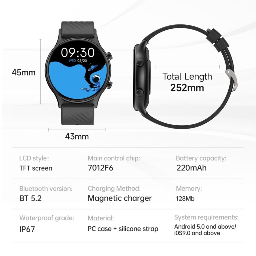 سایز قاب ساعت هوشمند